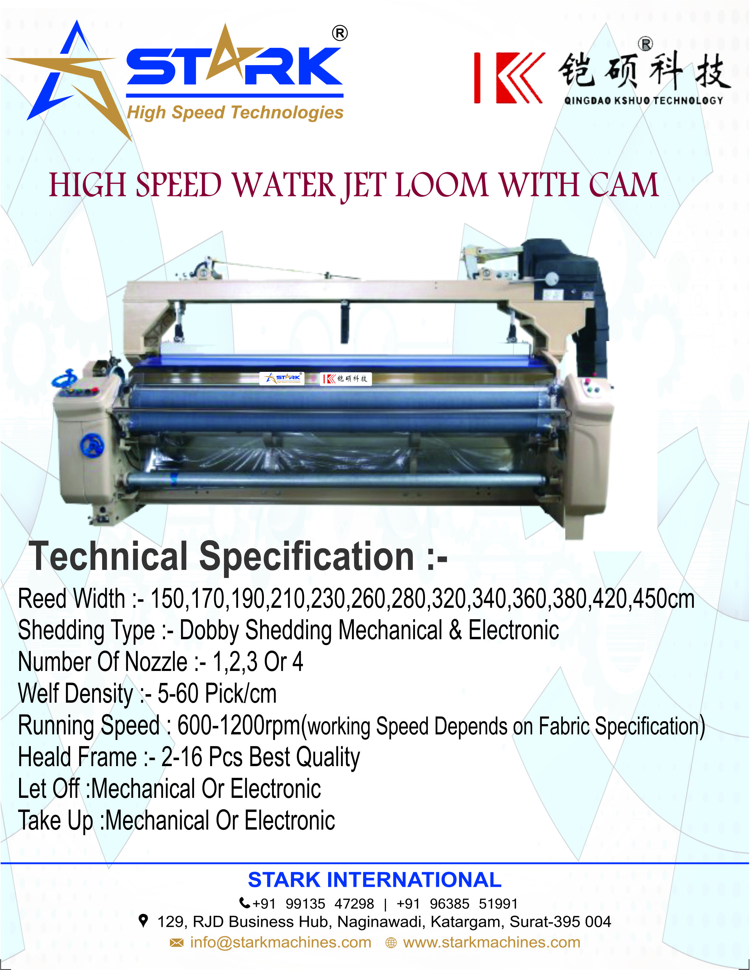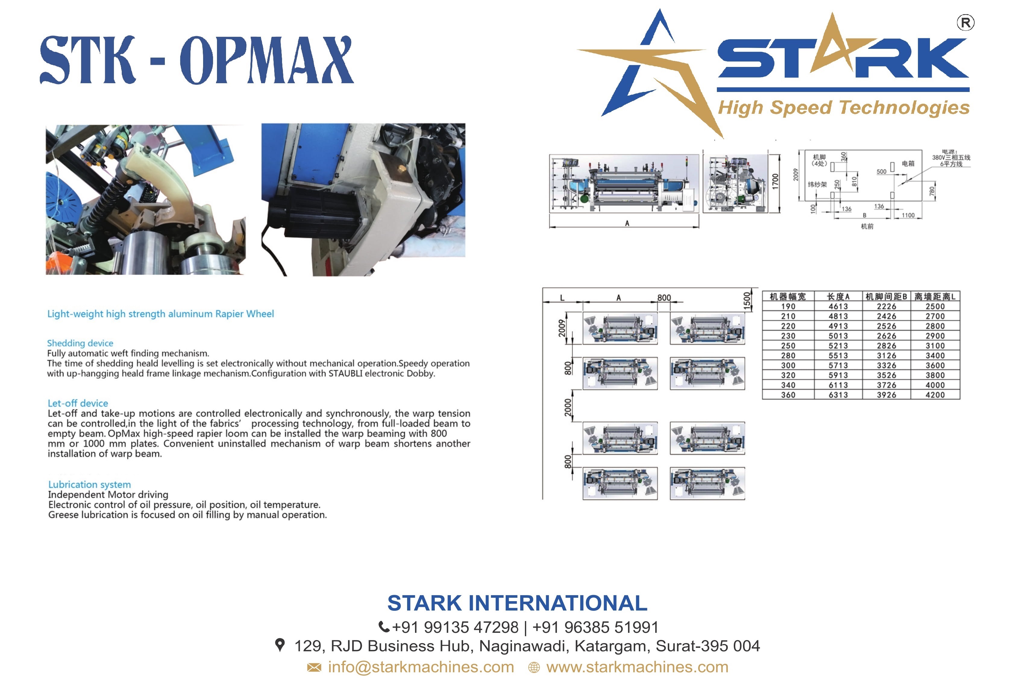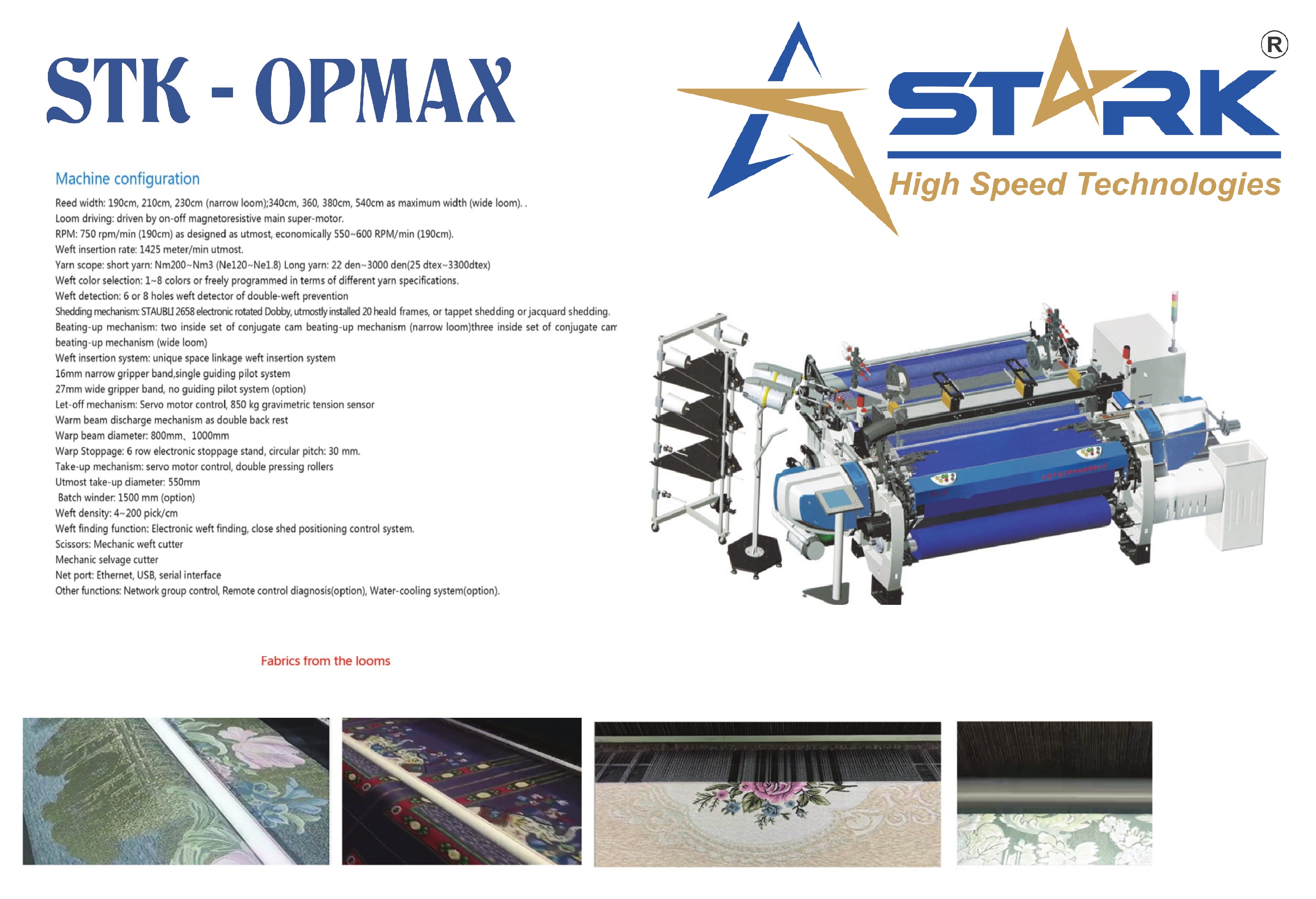 STARK INTERNATIONAL introducing the new OpMax model High Speed Rapier Loom 380cm width with 5376 Hook Electronic Jacquard successfully running at 400 RPM.
