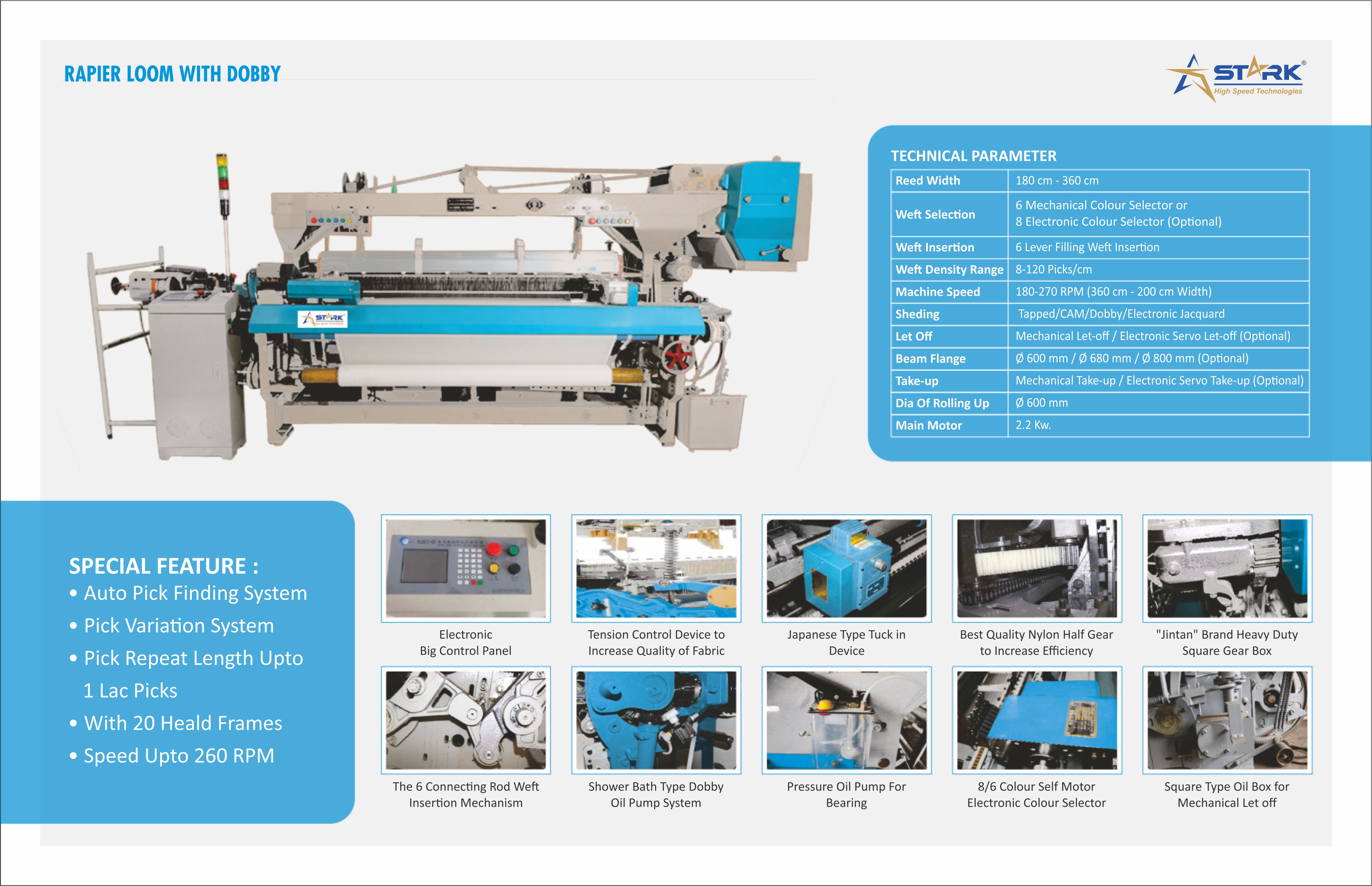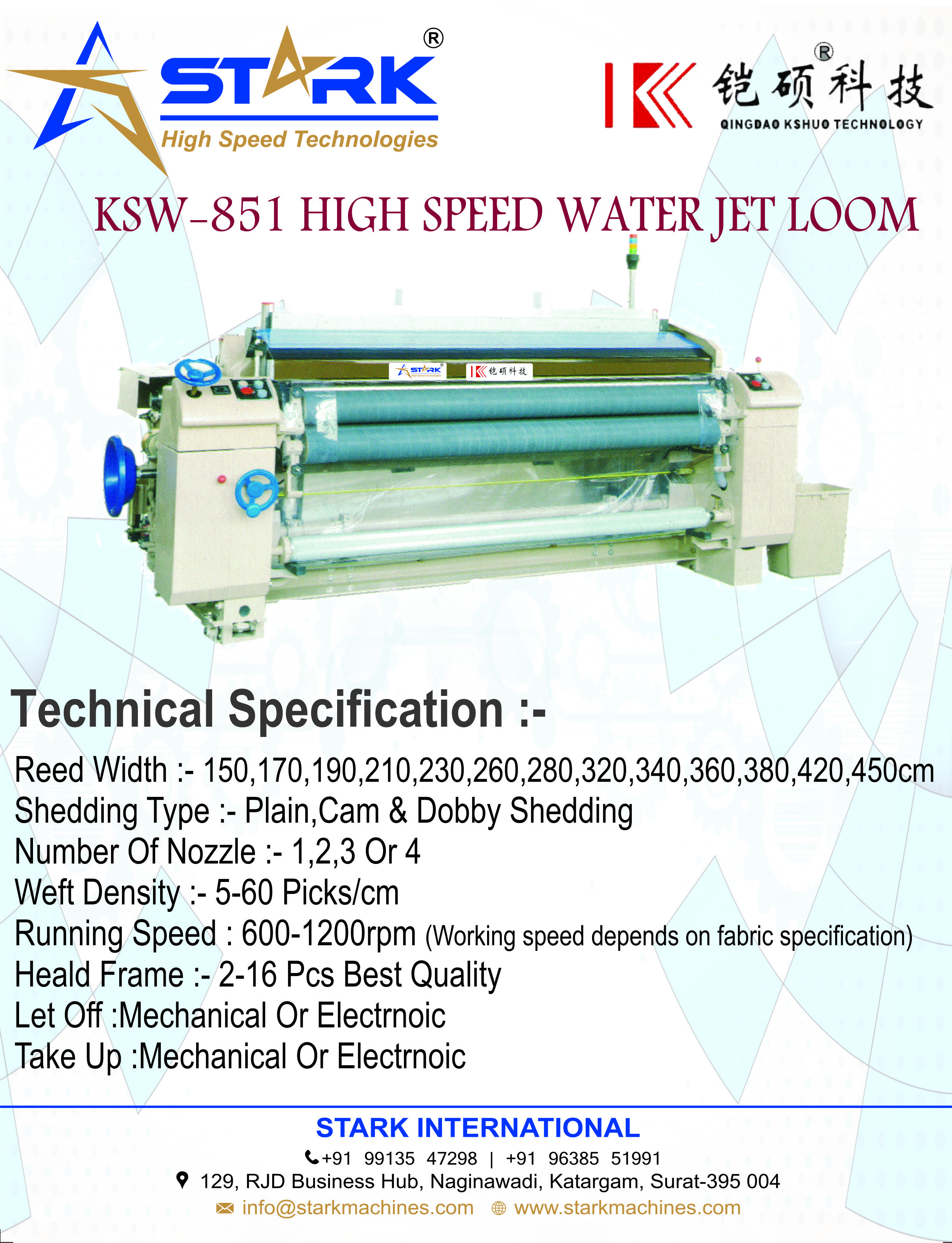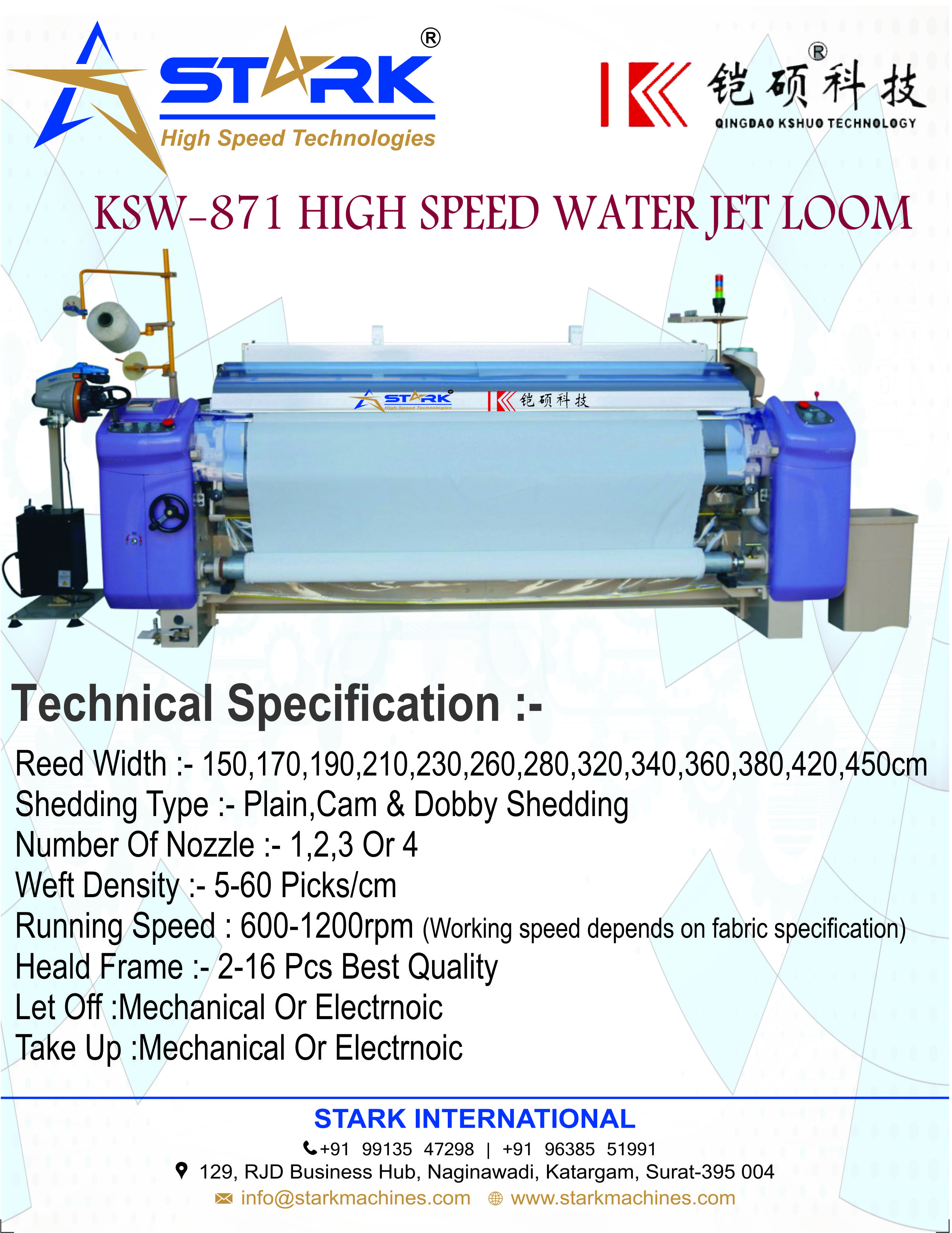 STARK INTERNATIONAL introducing the new OpMax model High Speed Rapier Loom 380cm width with 5376 Hook Electronic Jacquard successfully running at 400 RPM.